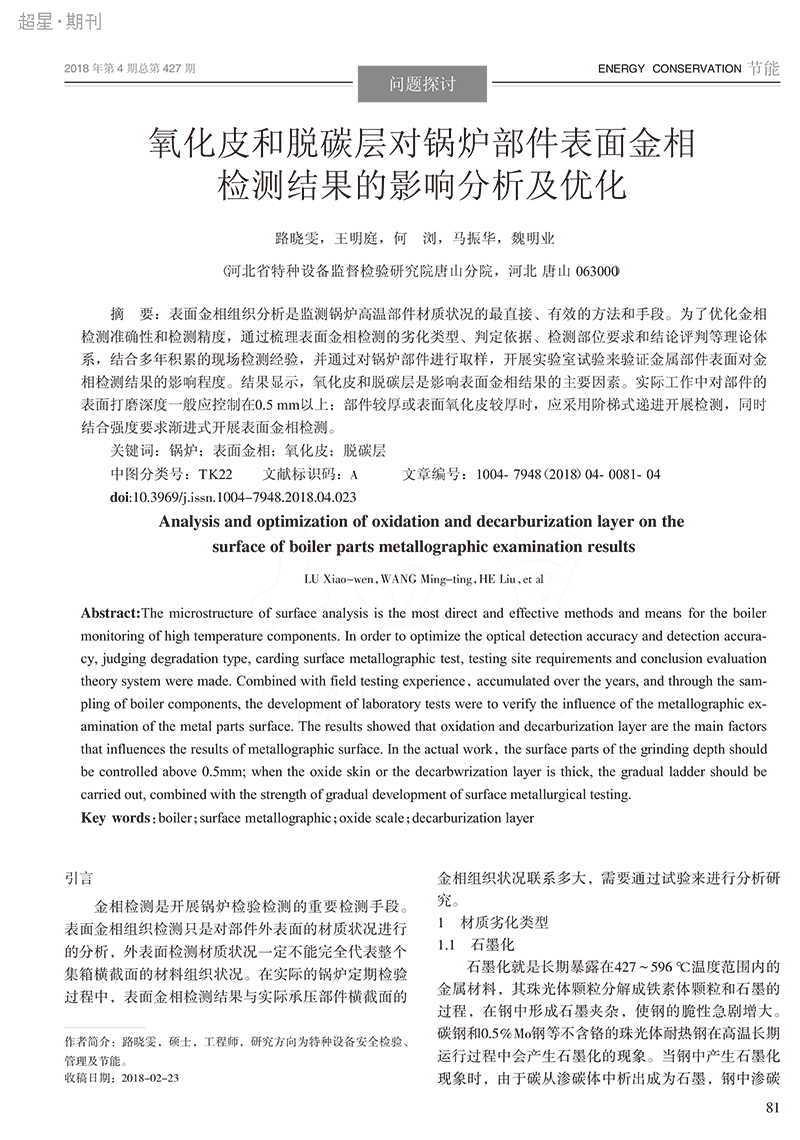 【轉載】氧化皮和脫碳層對鍋爐部件表麵金相檢測結果的影響分析及優化